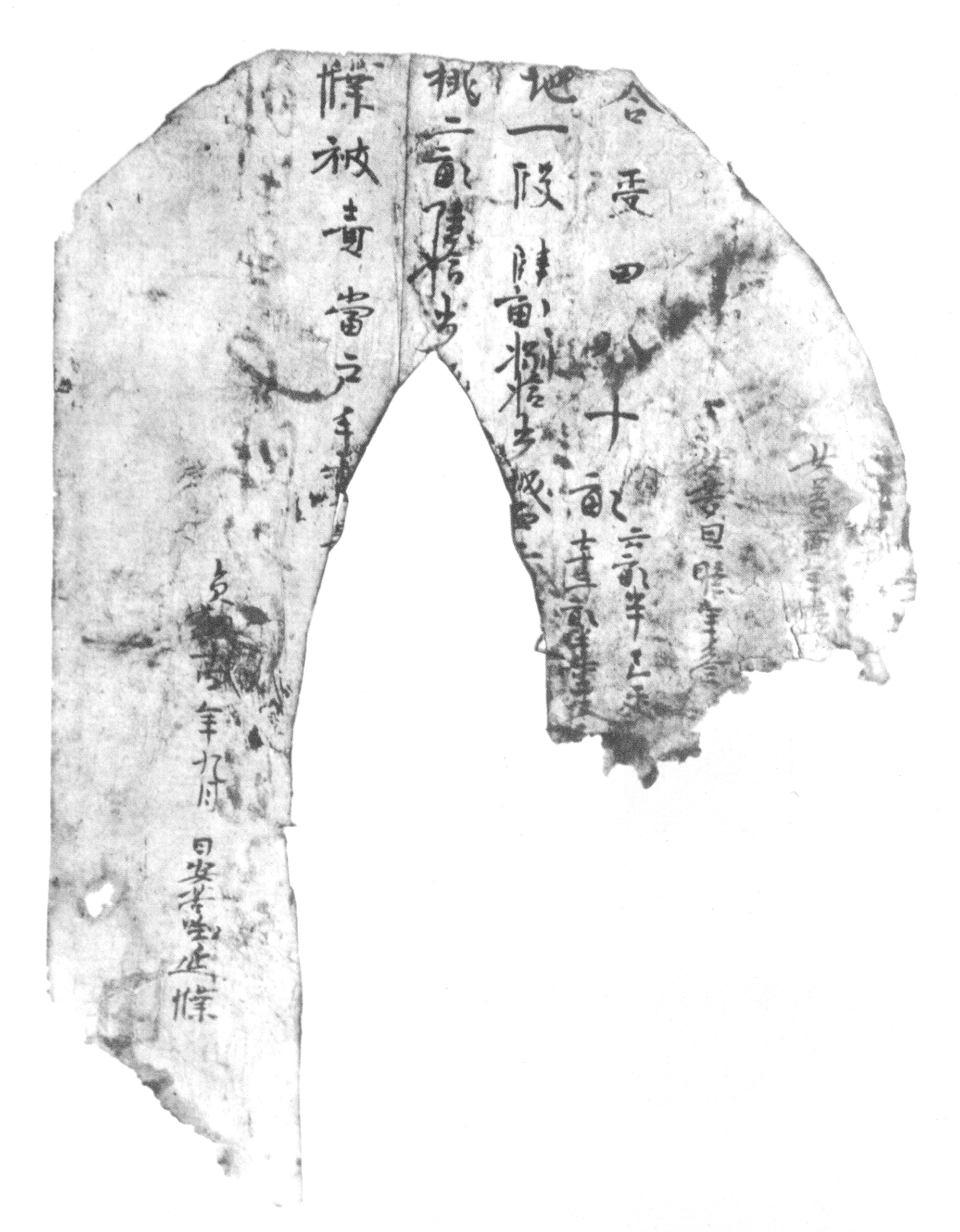 Census declaration of a Sogdian, An Kuzhiyan. Later, the document was cut and folded to create paper burial shoes for a woman (Lecture 1). Photo from Xinjiang chutu wenshu.