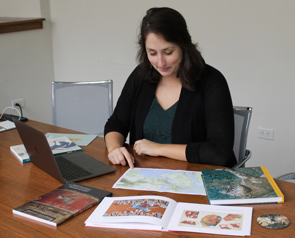 Kate Justement works on ISAW exhibitions materials. Photo by Iris Fernandez.